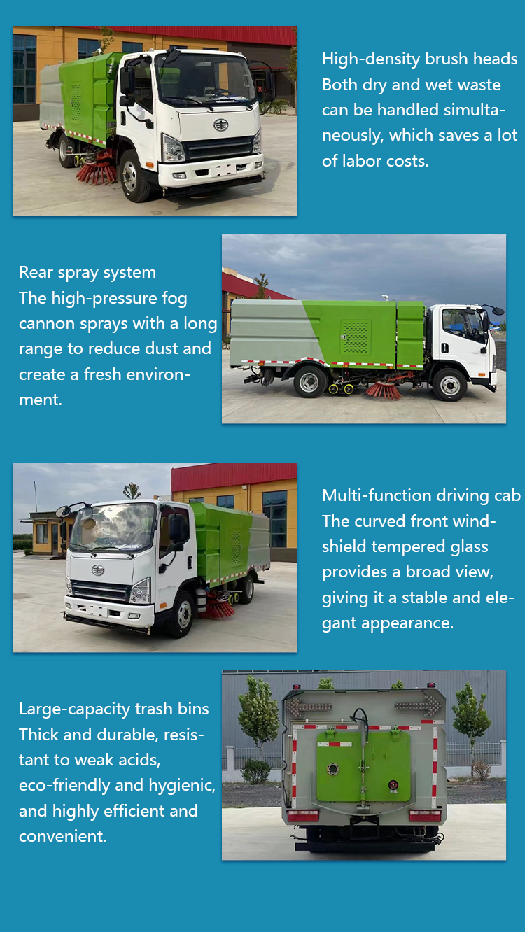This efficient street sweeper features a 5m³ capacity and a powerful high-pressure vacuum system for thorough road cleaning. Powered by a reliable FAW engine, it effectively collects dust, debris, and waste from urban streets, highways, and industrial areas. Customizable to meet specific requirements, this truck offers factory-direct pricing for a cost-effective municipal sanitation solution.