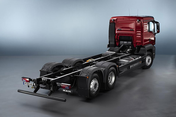 A truck chassis is a ladder frame. Two long steel rails running front to back, connected by cross members. It's the structural backbone that holds everything together .