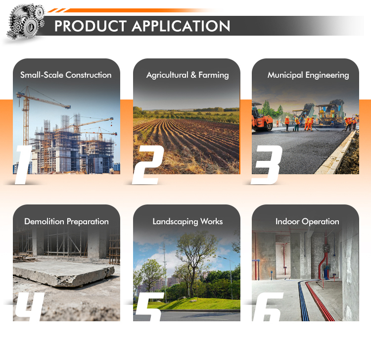 This 25HP mini skid steer loader is a compact, high-efficiency track loader powered by a Kubota diesel engine, meeting Euro 5/CE emission standards. With 180-500kg loading capacity, 0.15m³ bucket, and imported hydraulic system, it is ideal for landscaping, agriculture, construction, and narrow-space operations, featuring low fuel consumption, easy maintenance, and multi-attachment compatibility.