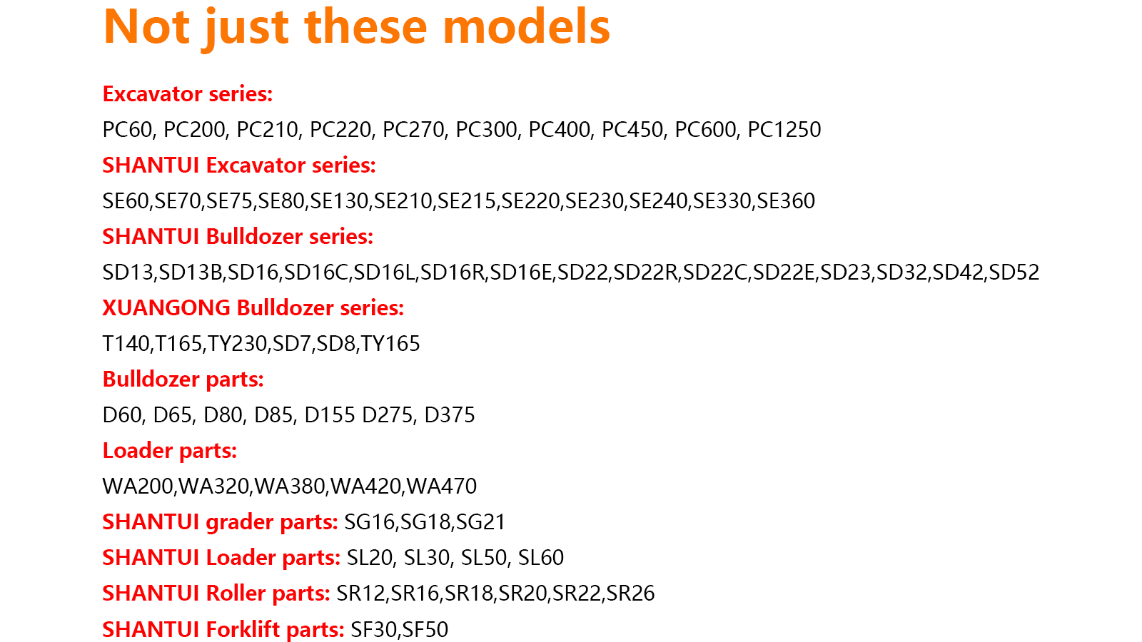 Main Products Excavator Parts, Bulldozer Attachments, Loader Attachments, Grader Attachments, Roller Parts