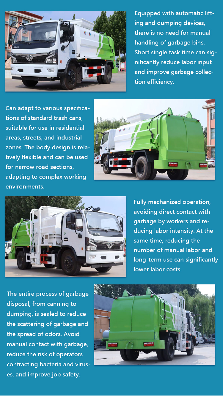 This Dongfeng Furuika 8m³ food waste recycling truck features an integrated dry-wet separation system to efficiently process kitchen waste. Designed for urban sanitation, it separates liquids from solids on-site, reducing odor and leakage while enabling cleaner, more sustainable waste treatment.