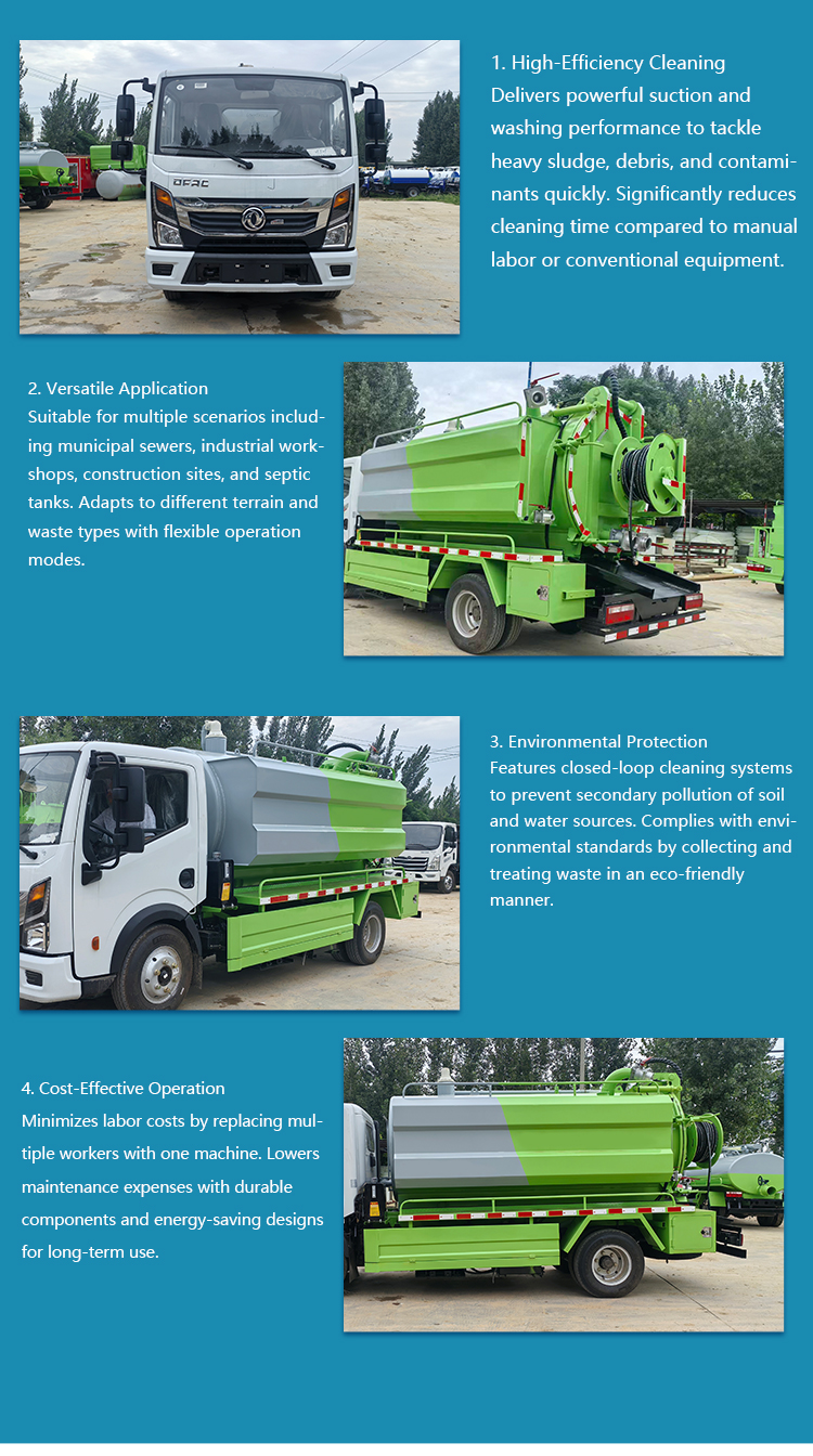 The Dongfeng Sewage Cleaning and Suction Truck is a versatile 4x2 diesel vehicle designed for efficient sewer dredging and waste removal. Equipped with a manual transmission, it offers reliable performance for cleaning drainage systems, septic tanks, and industrial waste, ensuring effective sanitation and environmental maintenance.