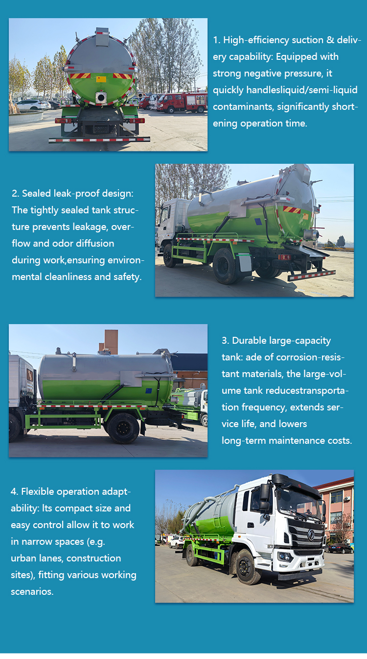 Equipped with a powerful vacuum pump and high-pressure water jetting system, this truck can both suck up solid and liquid waste and clean pipe blockages with ease. Its manual diesel engineensures reliable performance under heavy-duty working conditions.