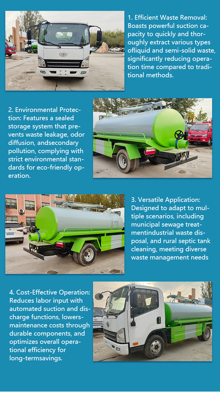• Factory Direct Customizable Jaw 5m Manual Diesel Fecal Suction Truck for Sewage and Waste Transport-High Power