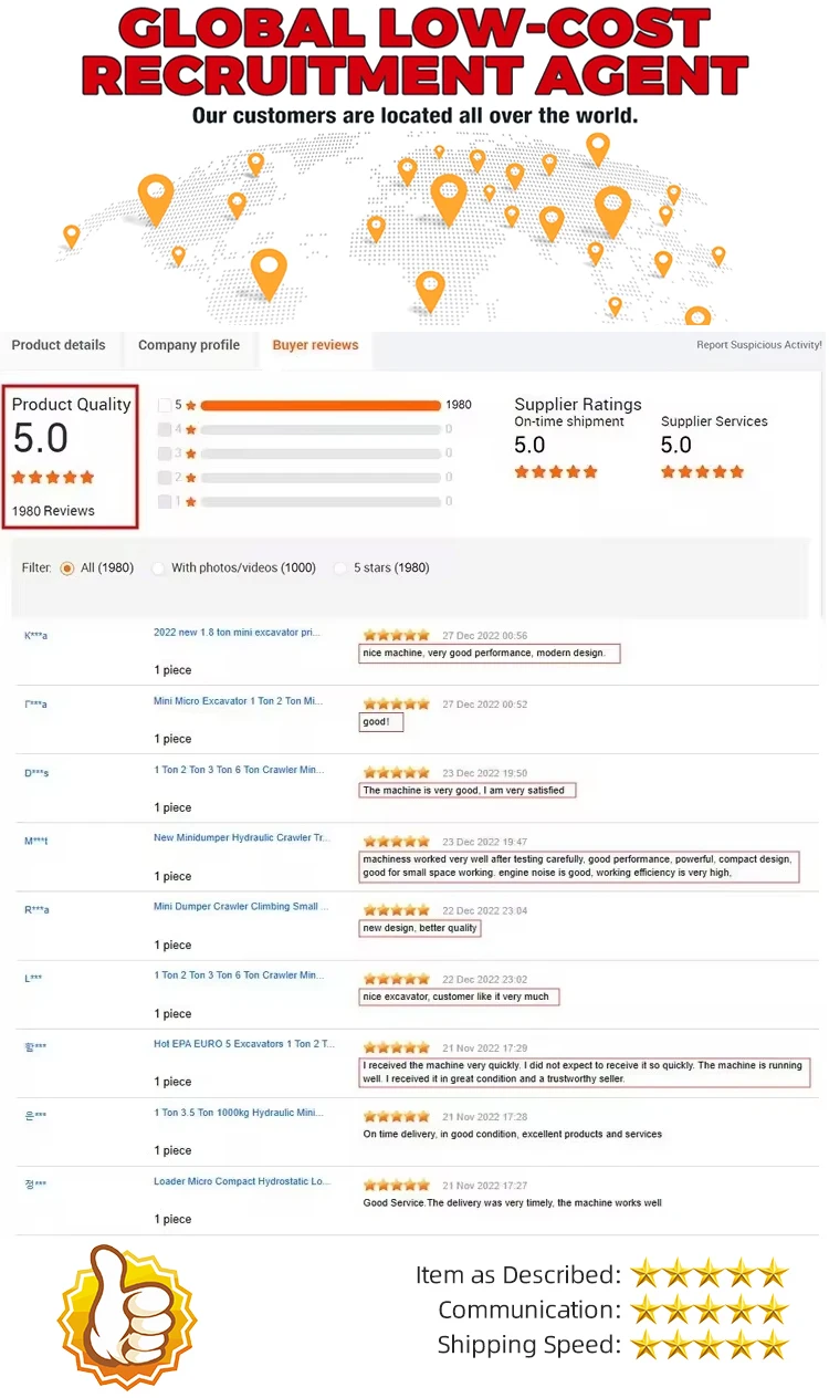 Q: What is the machine warranty period? A: One year. Q: Are you a manufacturer? A: Yes, we are a construction machinery manufacturer. Q: What are the payment terms? A: 30% T/T in advance, 70% T/T before shipment. Q: What is the delivery time? A: 3 to 7 days. Q: What if the machine breaks down? A: You can send us a video, and our technicians will analyze the cause of the problem based on the video. Q: What if parts break? A: We suggest customers purchase some standard spare parts according to their country and environment. If other parts are damaged, we will send them to you by sea or air. Q: Can we use our own company's trademark on the machine? A: Yes.