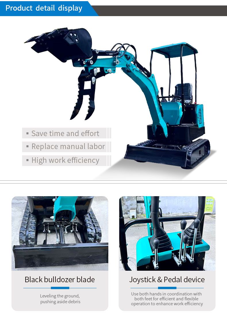 The Shandong Donggong ME12 mini excavator is equipped with a high-quality branded engine, delivering stable performance and low fuel consumption. Its compact body and flexible operation enable efficient work in confined spaces. Constructed from high-quality carbon steel with sandblasting and plastic spraying, the machine features a durable, rust-resistant finish and precise, controllable operation. It is widely used in mountain land reclamation, indoor decoration demolition, orchard ditch digging and weeding, greenhouse soil turning and planting, and rural sewer dredging, making it an ideal choice for small-scale construction and agricultural operations.