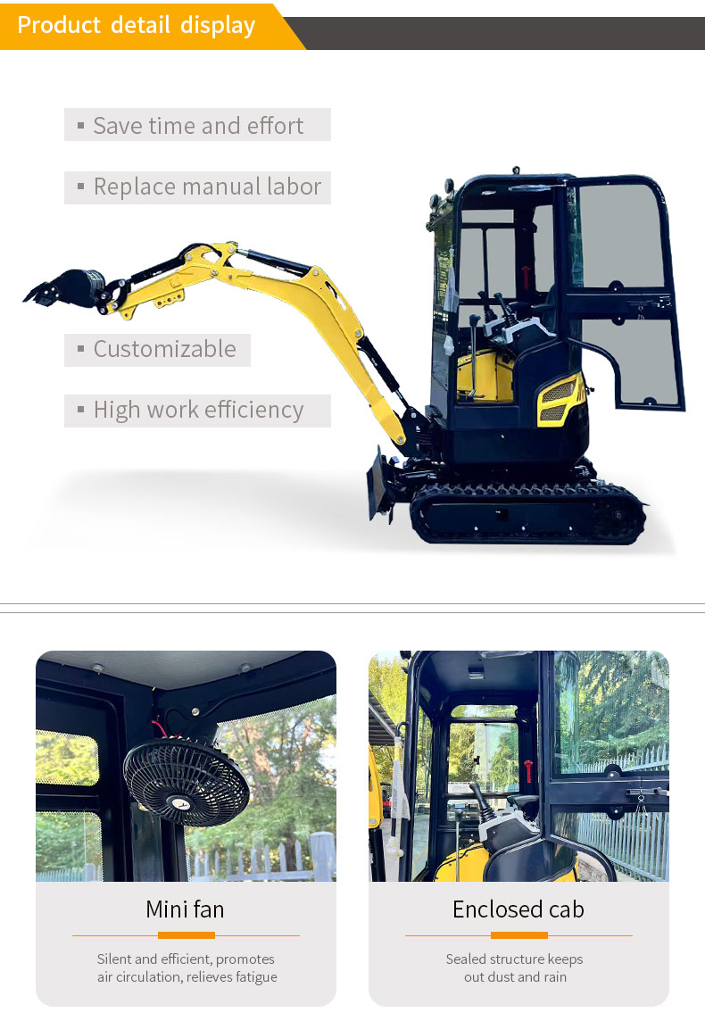The Shandong Donggong ME17 mini excavator is equipped with a high-quality branded engine, delivering stable performance and low fuel consumption. Its compact and flexible design enables efficient operation in confined spaces. Constructed from high-quality carbon steel with sandblasting and plastic spraying, the machine features a durable, rust-resistant finish and precise, controllable operation. It is widely used in mountain land reclamation, indoor decoration demolition, orchard ditch digging and weeding, greenhouse soil turning and planting, and rural sewer dredging, making it an ideal choice for small-scale construction and agricultural operations.