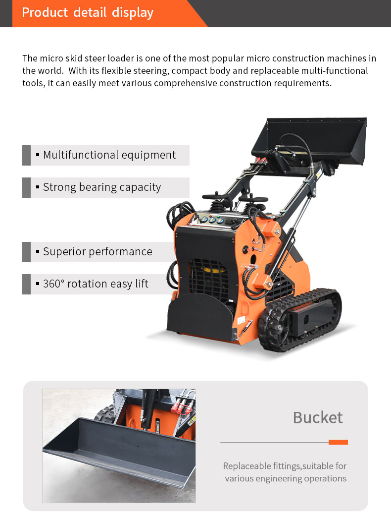 The micro skid steer loader is one of the most popular compact construction machines worldwide. Featuring flexible maneuverability, a compact structure, and interchangeable multifunctional attachments, it easily meets diverse construction needs.