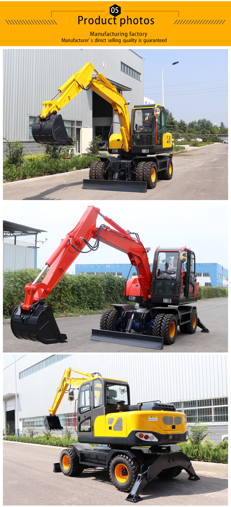 Full hydraulic wheel excavators, small and medium-sized crawler excavators, skid steer loaders, CNC rebar processing equipment, dredging and demolition robots, customized excavator modifications
